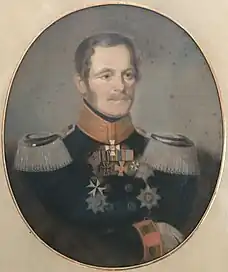Friedrich Wilhelm von Rauch (15 March 1790 in Potsdam – 9 June 1850 in Berlin) was a lieutenant general in the Prussian Army. Born in Potsdam, he was the son of major general Bonaventura von Rauch and took part in the War of the Fourth Coalition. He served as an adjutant general to King Frederick William IV of Prussia and as Prussia's military attaché at the Russian court of Emperor Nicholas I. He died in Berlin. His restored tomb monument is still there in the Invalids' Cemetery. His sons Alfred Bonaventura and Friedrich Wilhelm von Rauch also became generals.