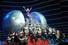 Friedrichstadt-Palast has diverse programing, ranging from children's shows, guest performances, and festival galas. The venue specializes in complex shows that use advanced lighting and stage technology, over a hundred performers, and stylized acrobatic numbers. "Now we are modern – trying to compete with Las Vegas, but not in a western or American way," said Berndt Schmidt. In residence, the Friedrichstadt-Palast has a Ballet Company, a show-band, and a Youth Ensemble.[9] The shows are suitable for an international audience.