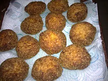 Fritas de prasa are similar to a latke.[1] Fritas de prasa have been served by Sephardi Jews on Hanukkah, Passover and Rosh Hashanah since the time of the Spanish Inquisition and forced expulsion of Jews from Spain.[2]