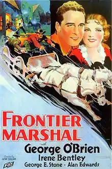 Frontier Marshal is a 1934 American Pre-Code Western film directed by Lewis Seiler and starring George O'Brien. Produced by Fox Film and Sol M. Wurtzel, the film is the first based on Stuart N. Lake's enormously popular but largely fictitious "biography" of Wyatt Earp, Wyatt Earp: Frontier Marshal. A second version of the film, also produced by Wurtzel, was made in 1939, and a third interpretation by John Ford entitled My Darling Clementine was released in 1946.