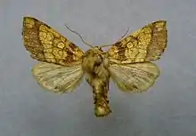 The frosted orange moth (Gortyna flavago) is a moth of the family Noctuidae which is found in Europe, Armenia, Syria and east through the Palearctic to western Siberia.[1] It has also been recorded in Algeria. The species was first described by Michael Denis and Ignaz Schiffermüller in 1775. The frosted orange is a night-flying species with orange and brown speckled wings allow for perfect camouflage against autumn leaves in the daytime. It is attracted to light and does not come to flowers, and its larva inhabit the stems and roots of the species' food plants.
