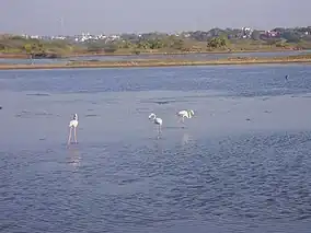 This site is a marshland and thus home to migratory birds like Flamingos, locally called as 'Surkhaab'.[3] Other birds found in the area include the Painted Stork, Paddy field Pipit, Purple Sun Bird, Cattle Egret, Grey Plover, Clamorous Reed Warbler, Striated Heron, Red Neck Phalarope, Red Wattled Lapwing, Indian Carmorant, Red-vented Bulbul, Comb Duck, House Crow, Black Winged Stilt, Asian Palm Swift and Sanderling.[4]
