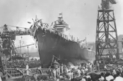 The destroyer Kuroshio launching from Fujinagata Shipyards, 1938