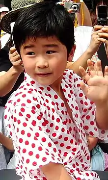 Fuku Suzuki (鈴木 福, Suzuki Fuku, born 17 June 2004) is a Japanese actor from Tokyo.[4] A member of the talent agency Theatre Academy,[2] he made his first appearance in 2006 on the NHK children's programme Inai Inai Baa! before earning a major role in Marumo no Okite and more recently the lead role in the television drama and film Kodomo Keisatsu.[4][5][6] Suzuki has also featured as a tarento in various variety and quiz shows, most notably Waratte Iitomo! where he was a "holiday regular".[7] His younger sister, Yume Suzuki, is also a child actress.[8]