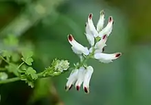 Fumaria capreolata, the white ramping fumitory[2] or climbing fumitory,[3] is an herbaceous annual plant in the poppy family Papaveraceae. It is native to Europe, western Asia and northern Africa and naturalised in southern Australia, New Zealand, and southern South America.[3][4] Common names include also ramping fumitory, white fumitory, and white-flower fumitory.[3]