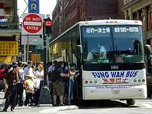 Fung Wah Chinatown Bus awaiting departure at the Canal St. stop in Manhattan, New York in 2007