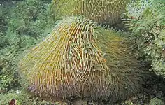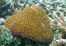 Fungia is a genus of corals in the family Fungiidae. It is monotypic with the single species Fungia fungites, which is found growing on reefs in the Indo-Pacific.
