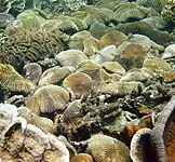 - ↑ Gittenberger, A., Reijnen, B.T. & Hoeksema, B.W. (2011) A molecularly based phylogeny reconstruction of mushroom corals (Scleractinia: Fungiidae) with taxonomic consequences and evolutionary implications for life history traits. Contributions to Zoology 80: 107-132. , Available online at: http://dpc.uba.uva.nl/cgi/t/text/get-pdf?c=ctz;idno=8002a02 Archived 2019-07-02 at the Wayback Machine