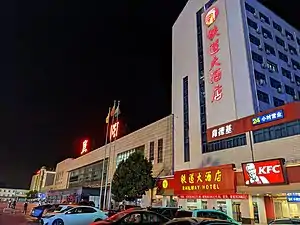 In 1996, the Beijing-Kowloon railway opened and Fuyang Station was converted from a marshalling station to a passenger station. The area of the station building was increased to 10,270 square meters, the waiting room expanded to 5,662 square meters and the ticket hall opened with 14 ticket windows.[3][4] At the same time, a new service building was built; the station had 3 platforms and 9 tracks, and 4 buffer tracks were built.[5]