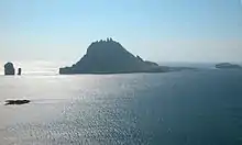 Gáshólmur is a small islet on the southside of Sørvágsfjørður in the Faroe Islands. To the east of the islet lies another islet, Tindhólmur. The islet is uninhabited, and the only living creatures are seabirds and sheep rams, which are placed on the islet each year by the locals in Sørvágur. There is a lighthouse at the north-western extremity of the islet.