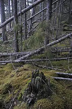 The nature reserve protects an area of surviving old-growth forest dominated by spruce in a landscape otherwise heavily forested. Trees up to 300 years old grow in the reserve. The unspoilt forest with its coarse woody debris provides a habitat for several red listed or unusual species such as Schismatomma pericleum, Chaenothecopsis viridialba, Haploporus odorus and Anomoporia bombycina.[1]