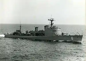 In 1933 the Swedish government granted the construction of two new destroyers.[1] The destroyers were given names of Swedish coast towns and so this class was called Stadsjagare ("Town-class destroyers"). The first ship was delivered in 1936 and the second in 1937. In 1936 two additional destroyers were ordered and after the war broke out a third pair was ordered as well.[2] After the war all destroyers except Göteborg which was in poor shape from the Hårsfjärden disaster received a refit where the center gun was moved to the X position on the aft deckhouse and the anti-aircraft armament (consisting of four modern Bofors 40 mm L/70 guns) was concentrated on a platform around the rear funnel. In 1958–1963 three of the destroyers were rebuilt as frigates that included a change of armament. The first ship to be decommissioned was Göteborg in 1958. In the decade that followed all ships were decommissioned, the last in 1968.