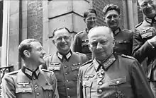 In July 1944, Kluge was appointed OB West (Commander of the German Army in the West) after his predecessor, Field Marshal Gerd von Rundstedt, was dismissed for remarking that the war was lost.[63] With the initiative belonging to the Allies, Kluge immediately sought to assert authority over Rommel, in charge of Army Group B and build his command's confidence in defending Normandy.[64] Yet by 12 July, having toured the front and been briefed by field commanders, Kluge expressed his skepticism to Alfred Jodl: "I am no pessimist. But in my view, the situation could not be grimmer".[64] Five days later, Rommel was wounded when a Royal Canadian Air Force (RCAF) Spitfire strafed his staff car, causing the vehicle to veer off the road; Kluge succeeded him in command of Army Group B while retaining his other post.[64]