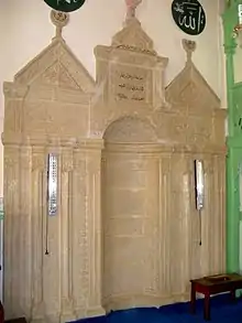 Although it is an Ottoman mosque, the non-Muslim architect Todiri has introduced some church elements like unusually decorated minbar and the portal of the building.[2]