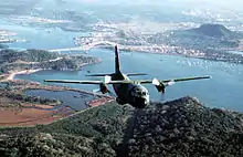 The G.222 has seen considerable service in air relief and military supply operations. From 1979 onwards, Italy, along with other Western nations, provided considerable military aid to Somalia, part of the Italian contribution was four G.222s.[24] In 1982, three Ejército Argentino G.222s were operational during the Falklands War, and may have participated in a logistical capacity.[25] In 1983, a single Italian Air Force G.222 was outfitted for fire suppression duties, alongside an existing C-130 in the same role.[26]