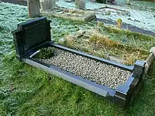 In Churchward's will of 4 October 1933 he bequeathed various sums of money to his staff, including his gardener, housekeeper, maidservant, parlour maid, assistant gardeners and two friends. He awarded his chauffeur £4,000 along with 2 lathes with various tools and accessories including guns, motor cars and accessories, fishing rods and tackle and wearing apparel. The majority of his £60,000 plus estate was divided equally between his two sisters, Mary and Adelina. He is buried in the churchyard of Christ Church in Old Town, Swindon. His grave is marked by a polished black marble headstone with a kerb which was designated as a listed building in 1986.[40]