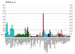 - ↑ Wang XY, Smith DI, Liu W, James CD (Aug 1998). "GBAS, a novel gene encoding a protein with tyrosine phosphorylation sites and a transmembrane domain, is co-amplified with EGFR". Genomics. 49 (3): 448–51. doi:10.1006/geno.1998.5239. PMID 9615231.