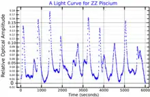 A light curve for ZZ Piscium, adapted from Fontaine and Brassard (2008)[9]