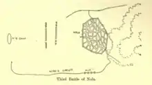 The first historical reference to Claudius is by Livy, who records his involvement as legate under consul Marcus Claudius Marcellus in the Third Battle of Nola, south-east of Capua, in 214 BC.[6] Following Rome's disastrous defeat at the Battle of Cannae in 216 BC, Hannibal had begun pursuing a policy of turning the Italian allies against Rome.[7][8] Soon after, the popular party in Nola attempted to surrender the city to the Carthaginians leading Marcellus, who was then serving as praetor, to mount a spirited and successful defence of the city. The following year Hannibal again attempted to seize Nola only to be once again repelled by Marcellus, who was now proconsul.[9]