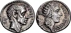 Caldus portrayed in a denarius minted by his grandson in 51 BC[1]