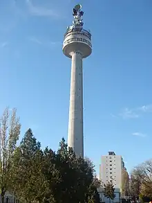 Galați TV Tower (Romanian: Turnul de televiziune Galaţi) is a 110-metre (360 ft) tall concrete tower used for FM and TV broadcasting in Galați, Romania. The tower, completed in 1978, is equipped with a tower restaurant, perhaps the only of this kind in Romania.