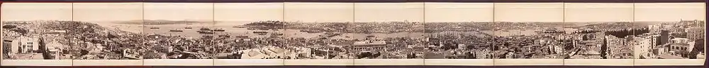 Panoramic view from the observation deck of the Galata Tower during the late Ottoman period
