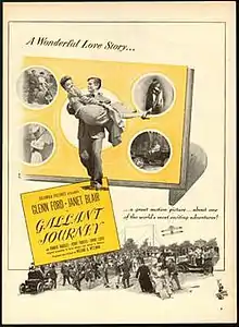 Gallant Journey is a 1946 American historical film written, produced and directed by William A. Wellman and starring Glenn Ford, Janet Blair and Charles Ruggles. The film is a biopic of the early U.S. aviation pioneer John Joseph Montgomery. Gallant Journey depicts his efforts to build and fly gliders, from his childhood through to his death in 1911. The chief stunt pilot for the film was Paul Mantz. It was produced and distributed by Columbia Pictures. It is also known by the alternative title The Great Highway