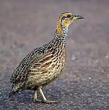Gallini is a tribe of bird in the subfamily Phasianinae. It includes the bamboo partridges, francolins and junglefowl (including the chicken). Members of this tribe are found in both Asia and tropical Africa. This grouping was supported by a 2021 phylogenetic analysis of Galliformes, and has been accepted by the International Ornithological Congress. The tribe name is accepted by the Howard and Moore Complete Checklist of the Birds of the World.[1][2][3][4]