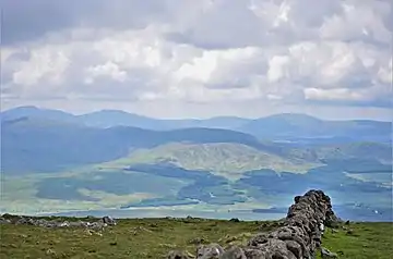 The Galloway Hills are part of the Southern Uplands of Scotland, and form the northern boundary of western Galloway. They lie within the bounds of the Galloway Forest Park, an area of some 300 square miles (800 km2) of largely uninhabited wild land, managed by Forestry and Land Scotland. The unusual place names reflect a mixture of the Old Norse and Scottish Gaelic languages and hint at the range of influences which have acted on society within the area over the centuries.
