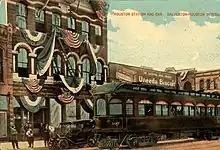 Houston station and car from the Galveston-Houston Interurban Railroad (postcard, circa 1915)