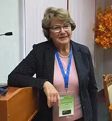 Galyna Grygorivna Skibo (Ukrainian: Галина Григорівна Скибо; June 22, 1940[1]) is Ukrainian scientist, doctor of medical sciences, professor, corresponding member of the National Academy of Sciences of Ukraine (2018),[2] laureate of the awards of the National Academy of Sciences of Ukraine named after O.O. Bogomolets (1996) and P.G. Kostiuk (2019), winner of the State Prize of Ukraine in the field of science and technology (2013),[3] Honored Worker of Science and Technology of Ukraine (2006),[4] head of the Cytology department of the Bogomoletz Institute of Physiology NAS of Ukraine,[5] professor of NSC "Institute of Biology and Medicine" of Taras Shevchenko National University of Kyiv.[6]