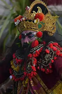 Gambuh is one of the oldest surviving forms in Balinese performing arts,[1][2][3] dating to the late Majapahit era (ca. 15th century) with very little known change since this time.[2][4] Emiko Susilo writes, "when the dance-dramas of Majapahit came to Bali, they had the new task of preserving the tradition of a fallen dynasty"[4] (emphasis in original). It also introduced a new element of narrative to Balinese performing arts that influenced other forms of dance-drama on the island, such as topeng masked dance and arja opera.[4] For centuries it was supported by patronage at the royal courts of Bali's aristocracy, during which it achieved its greatest heights of sophistication. As the courts fell apart in the bloody wars with the Dutch, this support evaporated and much of the art of gambuh was lost. Like the many other arts that formerly depended on royal patronage, gambuh found some community support by playing for temple ceremonies.[1]