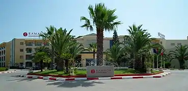 Gammarth (Tunisian Arabic: ڨمرت ⓘ) is a town on the Mediterranean Sea in the Tunis Governorate of Tunisia, located some 15 to 20 kilometres north of Tunis, adjacent to La Marsa. It is an upmarket seaside resort, known for its expensive hotels and shops. In the marina bay area, there's a well served pleasance port with a naval shipyard, once privately owned and, as 2023, managed by the public port authority. Gammarth began as a small fishing village but following independence from France it blossomed into a resort from the 1950s. Tourism now provides the backbone to the local economy.[1] Gammarth has many five-star hotels and restaurants and also contains many lavish white villas and coves in the vicinity. Notable villas include Abou Nawas Gammarth and Les Dunes.[2]