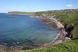 Gamrie Bay is a bay in Aberdeenshire, Scotland. The bay is between Crovie Head and More Head. The villages of Gardenstown and Crovie are located within the bay. A hill fort and the later Castle of Findon stood near the bay entrance of Kirk Den. The ruins of St John’s Church, the former parish church are located at the western end of the bay.