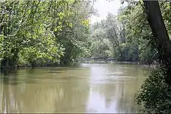 The name Ganargua has been translated as "where the village sprang up"[2] or "a village suddenly sprang up", and the name was given to by the creek by the region's original Iroquois inhabitants.[3] The nickname of 'Mud Creek' is given due to the murkiness of the water. Ganargua Creek is a primary spot for fishing, canoeing and kayaking. Even though a channel has been cut through the foliage, paddling trips on the creek can be difficult due to a number of log jams from fallen trees as a result of ice storms which hit the greater Rochester area in 1991 and 2003.