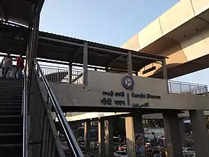 The Gandhi Bhavan Metro Station is located on the Red Line of the Hyderabad Metro, in the city of Hyderabad, India.[1][2] It is near to Care Hospital, Ram Ki Bandi, Hotel Shadab and Numaish Exhibition Grounds.[3]