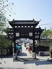 On 2 October 1939, the Japanese army captured the walled city. Three months after Japan's unconditional surrender on August 15, 1945, Gaoyou Japanese and fake troops, surrounded by the military and civilians in the liberated areas, resisted and refused to lay down their arms.[4] At this time, there were two brigades and one artillery squadron of the 90th Independent Mixed Brigade of the Japanese Army stationed in Gaoyou city, with more than 1,100 men, as well as the 42nd Division of the False Second Front Army and the False County Security Brigade and Police Brigade with more than 5,000 men.[4] In order to crush the plot of the Kuomintang army to collude with the Japanese and fake troops in Gaoyou to divide and attack the Central China Liberation Area, the Central Military Commission agreed on December 5 to launch the Battle of Gaoyou and seize Gaoyou City.[4] The Battle of Gaoyou destroyed more than 1,100 Japanese troops, including 892 prisoners; destroyed more than 4,000 pseudo-army, including 3,493 prisoners; captured more than 80 artillery pieces and 6,000 guns. The Battle of Gaoyou was the last battle of the New Fourth Army against the Japanese invasion of China, and the last battle against the Japanese in Central China, ending with the surrender of the Japanese and the complete victory of the New Fourth Army.[5] On 19 January 1949, the CPC controlled the walled city. The former site where the invading Japanese army surrendered to the New Fourth Army has been announced by the State Council as the second batch of 100 national anti-war memorial facilities and sites.[6]
