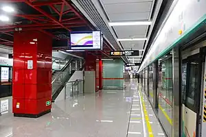 Gaozeng station (Chinese: 高增站; Cantonese Yale: Gōujāng Jaahm), formerly Aigang station (矮岗站; Áigōng Jaahm) during planning,[1] is an interchange station of Line 3 and Line 9 on the Guangzhou Metro. The underground station is located at the south of Guangzhou Baiyun International Airport in Baiyun District. The station opened for both lines when Line 9 went into operation on 28 December 2017.[2]