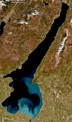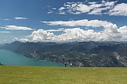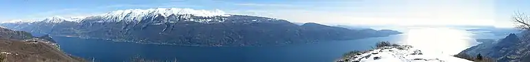 In Roman times the lake was known as Benacus and by some it was revered as god Benacus, the personification of the lake, sometimes associated with the cult of Neptune. Today it is better known as Lake Garda, a toponym of Germanic origin attested since the Middle Ages and deriving from that of the homonymous town on the Veronese shore of the lake, which, together with another famous locality of the lake, Gardone Riviera, and others less known – such as Gàrdola, Gardoncino, Gardoni, Guàrdola and Le Garde – testifies the Germanic presence in the area that goes from the 6th to the 8th century CE, in particular, the Lombard one. The name Garda is evolved from the Germanic word warda, meaning "place of guard", "place of observation" or "place of safety".[1]