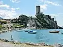In the 13th century, however, the Signoria Scaligera was established and it soon subdued the eastern shore of the lake. The Scaliger built numerous defensive constructions, in particular, they built the castles of Sirmione, Malcesine and Riva, reinforced the port structures of Lazise and Torri del Benaco, and built a great defense system called Serraglio, the only one of its kind in Italy. This fortified system, completed by Cangrande II in 1355, included isolated castles in Ponti sul Mincio and Monzambano, serious continuous and uninterrupted castles and towers connected by defensive walls starting from the fortress of Valeggio sul Mincio and then continuing up to Nogarole Rocca. The Seraglio remained practically intact until the mid-19th century when it was partially dismantled.