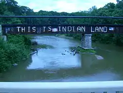 Garden River First Nation was represented in the treaty by Shingwaukonse, who was generally recognized as an Ojibwe grand chief by other bands in both the Lake Huron and Lake Superior watersheds. Shingwaukonse and his band had been living at their traditional garden lands at the mouth of the Garden River since 1841, after leaving a settlement near Sault Ste. Marie. The treaty formally recognized the band's reserve lands in this vicinity as reservation 14. Upon his death in 1854, Shingwaukonse was succeeded as chief by his son Augustine Shingwauk.[6] The last hereditary chief was Shingwaukonse's second son Buhgwujjenene, who succeeded his brother Augustine.[7]