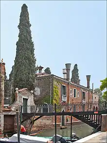 In 1884, Frederic Eden, a great-uncle of the British Prime Minister Anthony Eden, and his wife Caroline, sister of the garden designer Gertrude Jekyll,[1] bought an area of six acres on the Venetian island of Giudecca. It contained a former outbuilding of the convent of the Sisters of Santa Croce. The property was later expanded by two acres when the Venetian authorities enlarged the island. The couple created Venice's largest private garden, an English landscape garden symbolic of the British presence in Venice, containing statues, roses and animals. It was frequented by many figures from the world of the arts, including Marcel Proust, Rainer Maria Rilke, Walter Sickert, Henry James, Eleonora Duse and Baron Corvo.