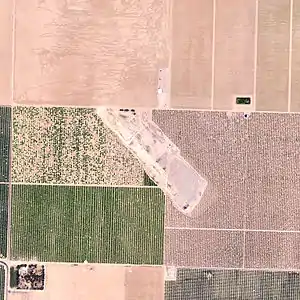The area around Taft, California is very agricultural in use, and as a result no trace remains of any of these former satellite airfields in 2011.