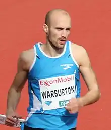 Gareth Warburton (born 23 April 1983) is a Welsh middle-distance runner originally from Caernarfon.[1] He specializes in the 800 metres. Warburton finished fourth in the 800m at the 2010 Commonwealth Games. He has represented Great Britain on numerous occasions. He was also a member of the Great Britain team at the London Olympics in 2012. He was selected as part of the Welsh squad for the 2014 Commonwealth Games, however he was suspended shortly before the start of the Games after he was charged with a violation of anti-doping rules.[2] In January 2015 UK Anti-Doping accepted that his positive test was due to taking a contaminated supplement and that he had not knowingly cheated, and gave him a six-month suspension, which was covered by the time he had been suspended since the Commonwealth Games.[3] He is the current Welsh record holder for the 800m.