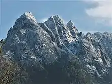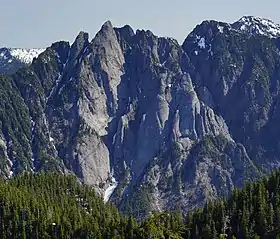 The Alpine Lakes Wilderness features some of the most rugged topography in the Cascade Range with craggy peaks and ridges, deep glacial valleys, and granite walls spotted with over 700 mountain lakes.[6] Geological events occurring many years ago created the diverse topography and drastic elevation changes over the Cascade Range leading to the various climate differences. These climate differences lead to vegetation variety defining the ecoregions in this area.