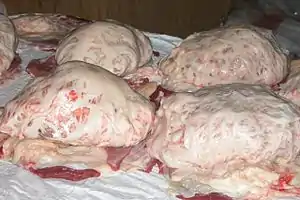 Garnatálg is a traditional dish from the Faroe Islands. It is made by kneading intestinal fat from sheep into lumps. These get air dried in "hjallur" (outhouses where the wind can blow through) and fermented. Garnatálg is served sliced and melted, often as a sidedish for fish, particularly "ræstur fiskur" (fermented semidried fish). It can also be served over potatoes.[1]