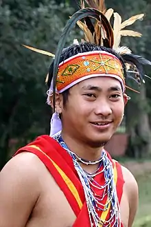 The Garo people are a Tibeto-Burmese ethnic group who live mostly in the Northeast Indian state of Meghalaya with relatively few people in neighboring Bangladesh.[4][5] Historically, the name Garo was used for a large number of different peoples living on the southern bank of Brahmaputra river, but now refers primarily to those who call themselves A•chik Mande (literally "hill people," from A•chik "bite soil" + mande "people") or simply A•chik or Mande and the name "Garo" is now being used by outsiders as an exonym.[6] They are the second-largest tribe in Meghalaya after the Khasi and comprise about a third of the local population.