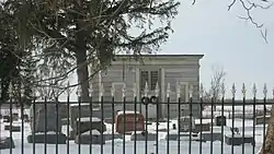 Garrett Community Mausoleum is a historic mausoleum located in Calvary Cemetery at Garrett, DeKalb County, Indiana. It was built in 1922, and is a one-story, cubic granite structure with simple Classical Revival style detail. It measures 30 feet wide and 42 feet deep. The mausoleum was largely used for interments into the 1950s, with the most recent in 1999.[2]: 3