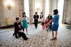 Locke's family awaiting the arrival of President Barack Obama in the White House on May 1, 2009