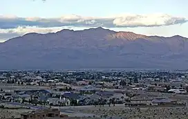 Gass Peak is the highest peak in the Las Vegas Range of Southern Nevada with a summit of 6,937 feet (2,114 m).[1] It is easily seen to the north of the Las Vegas Valley, bordering the city of North Las Vegas. The peak is located about 20 miles (32 km) north of Las Vegas and is within the Desert National Wildlife Refuge, administered by the U.S. Fish & Wildlife Service.[2]